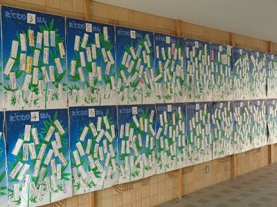 たてわり集会で1年生から6年生までそれぞれ、今の願いを丁寧に短冊に書きあげました。